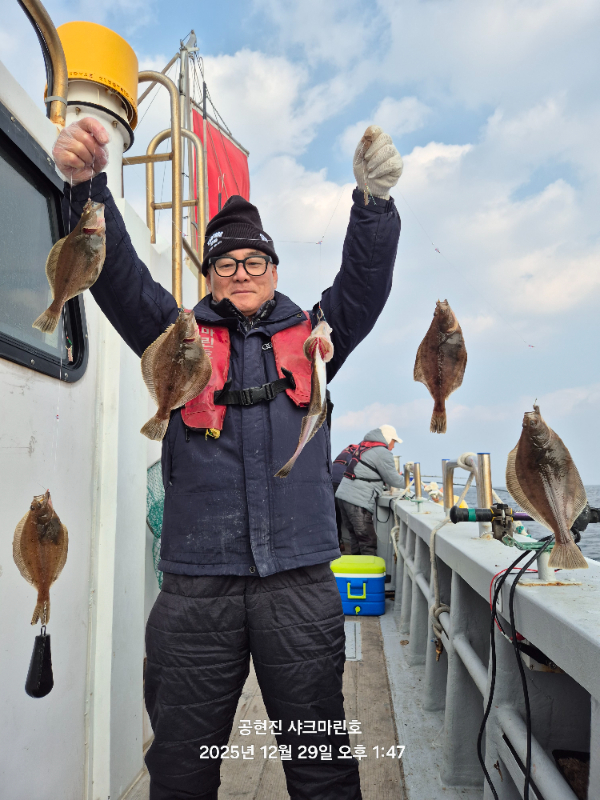 | 제목 : 22인승 샤크마린 12.29 어구가자미 줄줄이 줄타고 올라옵니다 낼 출조가실분들 연락주세요 010 8505 8321 | ||